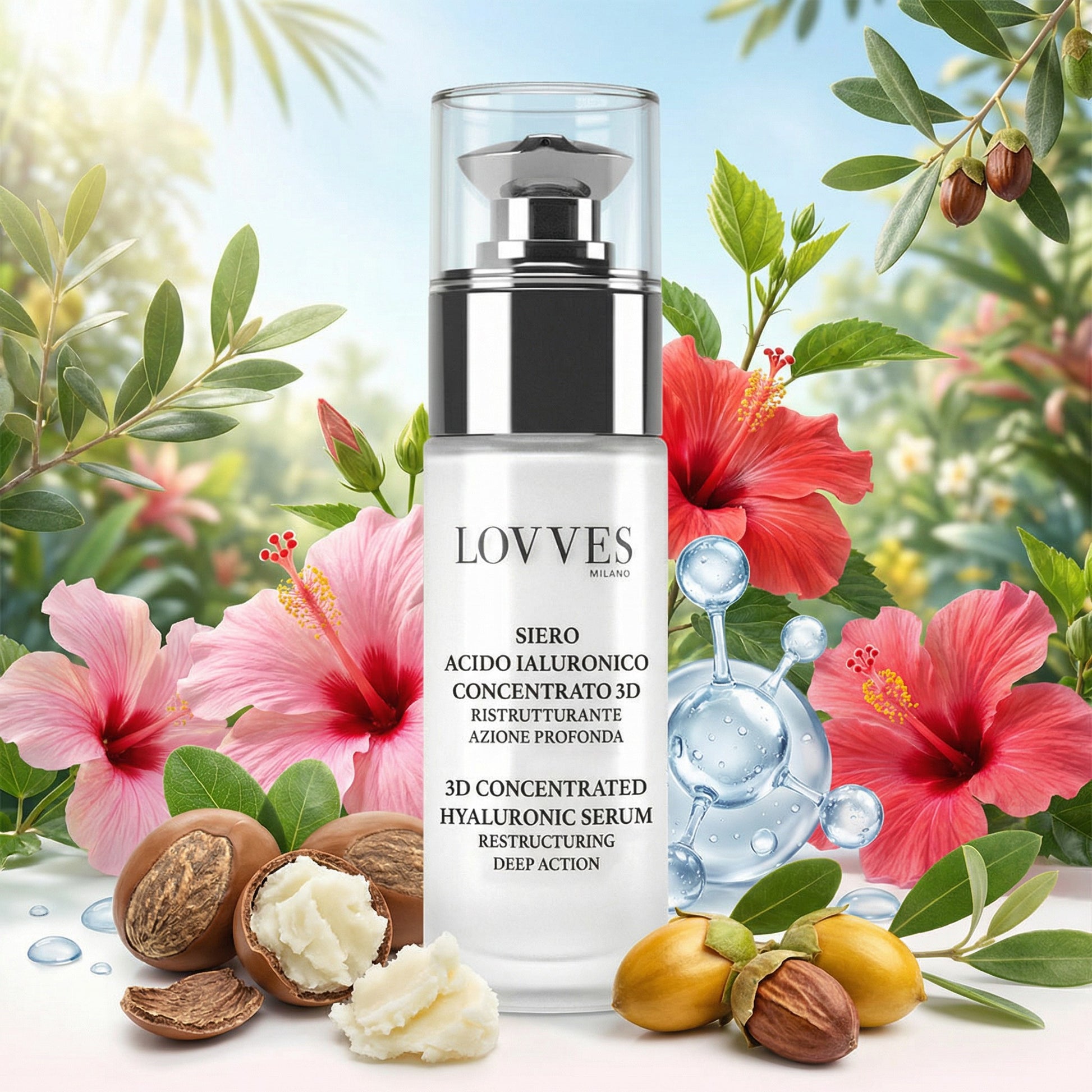 Il Siero Acido Ialuronico Concentrato 3D è un trattamento antiage con una formula innovativa che sfrutta il potere dell’acido ialuronico a 3 pesi molecolari LOVVES®, per un’azione ristrutturante e super idratante. Specificamente studiato per supportare la pelle del viso e del collo, questo siero favorisce il miglioramento della tonicità e dell’elasticità cutanea, conferendo un piacevole effetto vellutato immediato. Indicato per tutti i tipi di pelle e per chi desidera contrastare i segni del tempo con un approccio naturale e vegano, rappresenta un prezioso alleato nella cura quotidiana delle rughe e della pelle affaticata.